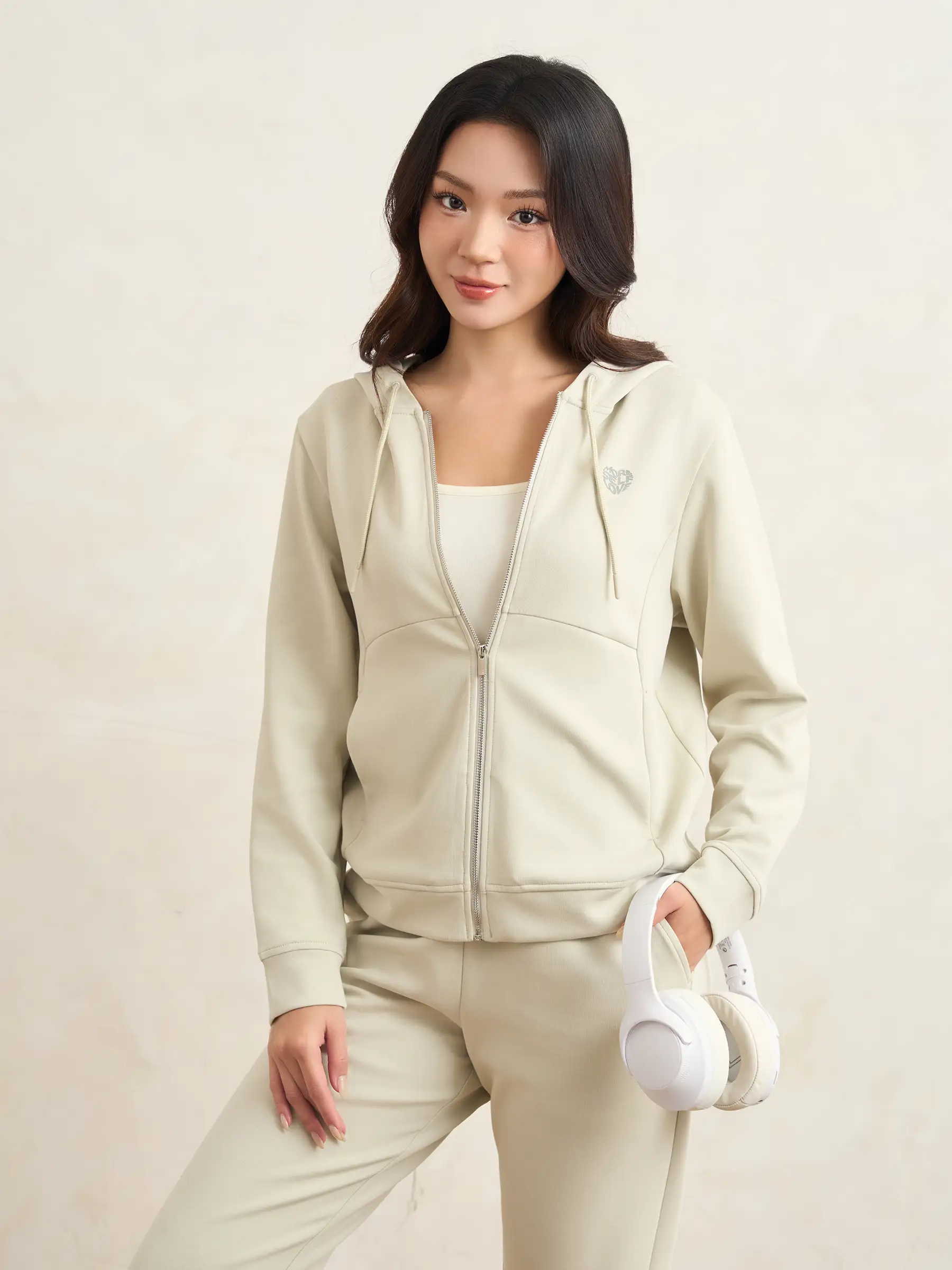 Điểm nhấn là logo in nổi hình trái tim cách điệu ở ngực, trẻ trung và nổi bật.