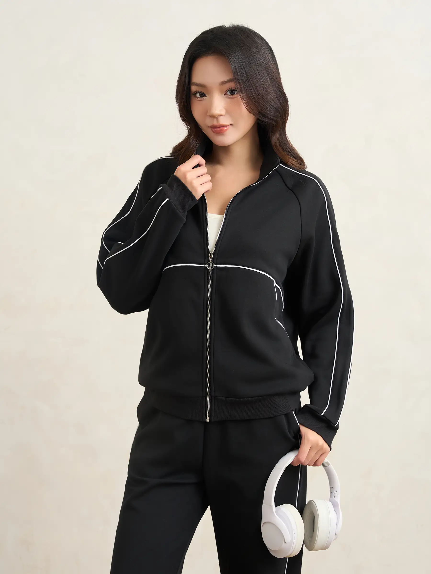Áo khoác nỉ phom Regular thoải mái, tôn dáng mà vẫn dễ vận động.