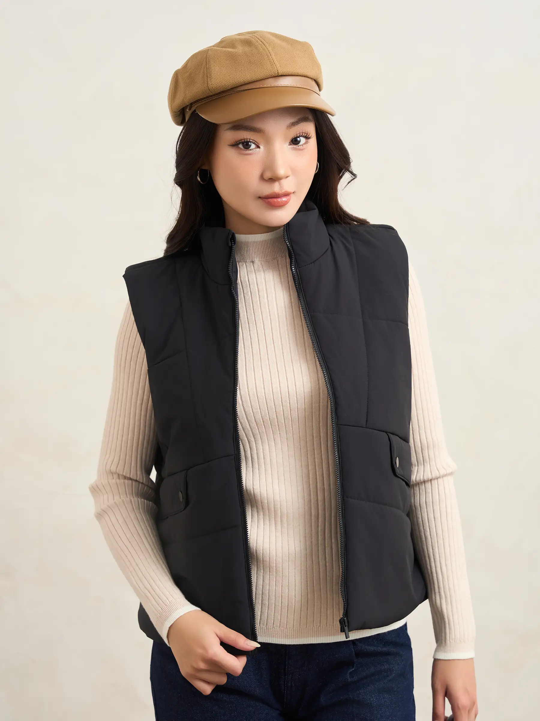 Không cần đến những chi tiết cầu kỳ, chiếc áo phao gile W0APH25005 của 5S Fashion chinh phục ánh nhìn bằng thiết kế chần bông cách điệu, phom dáng gọn gàng cùng chất liệu hiện đại. Một lựa chọn lý tưởng để giữ ấm hiệu quả mà vẫn năng động, thanh lịch trong mùa lạnh.