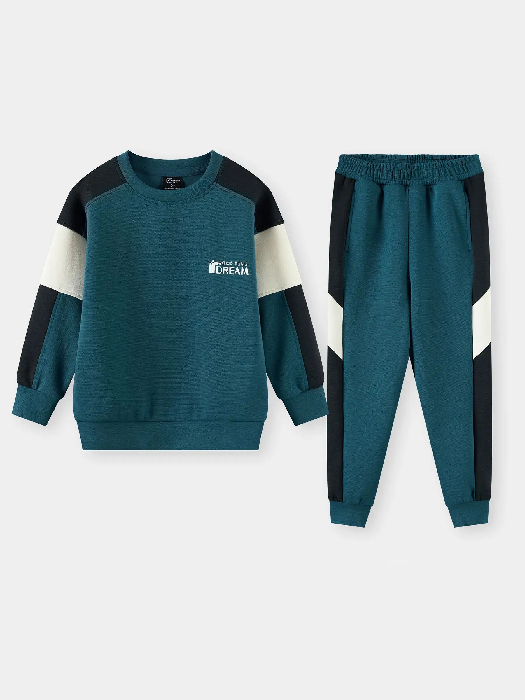 Quần nỉ thể thao: Dáng jogger, ống bo khỏe khoắn. Can phối màu tinh tế giúp bé trông năng động hơn.