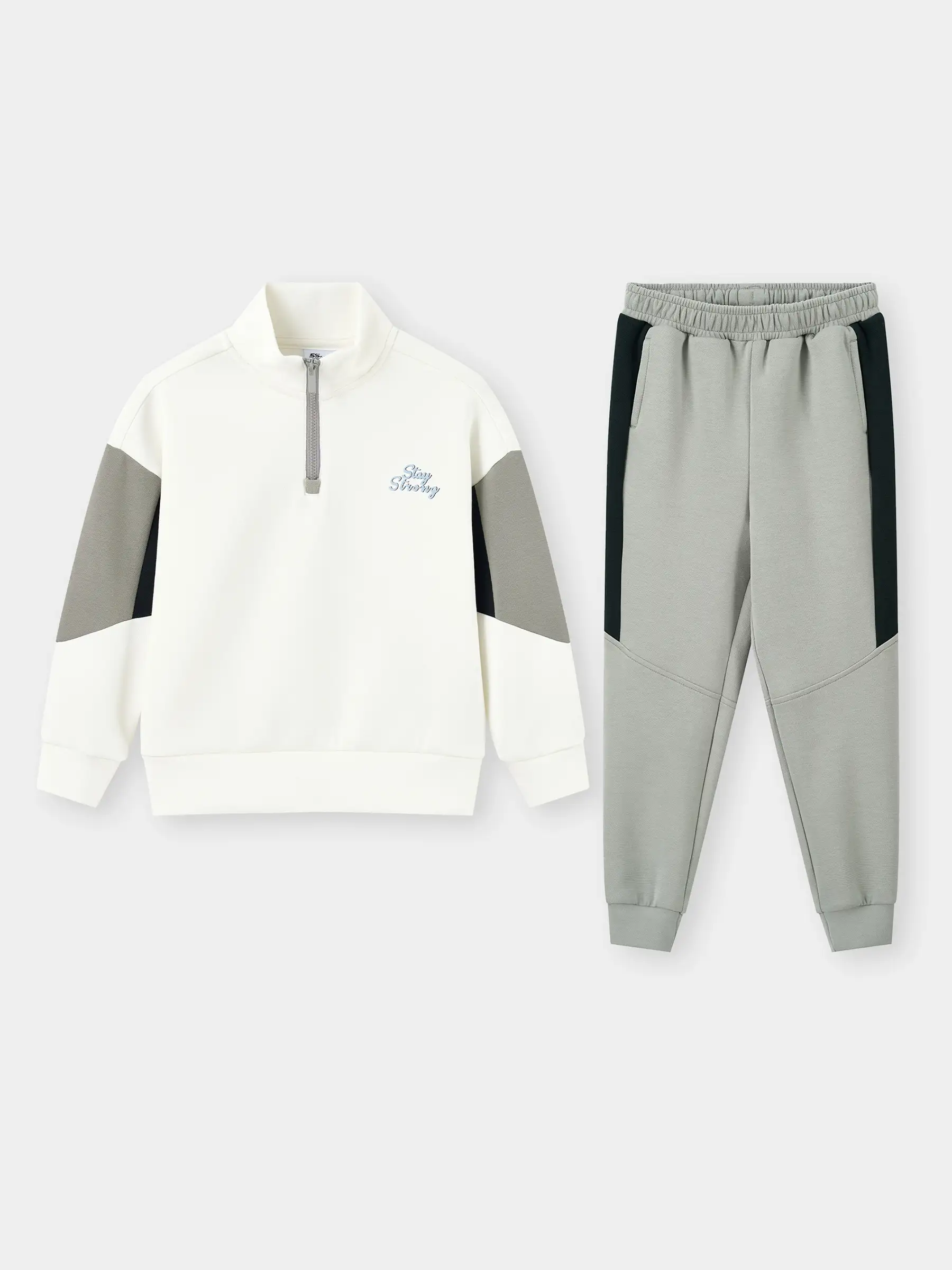 Áo cổ khóa – in chữ Stay Strong: Truyền năng lượng tích cực, giúp bé tự tin mỗi ngày.